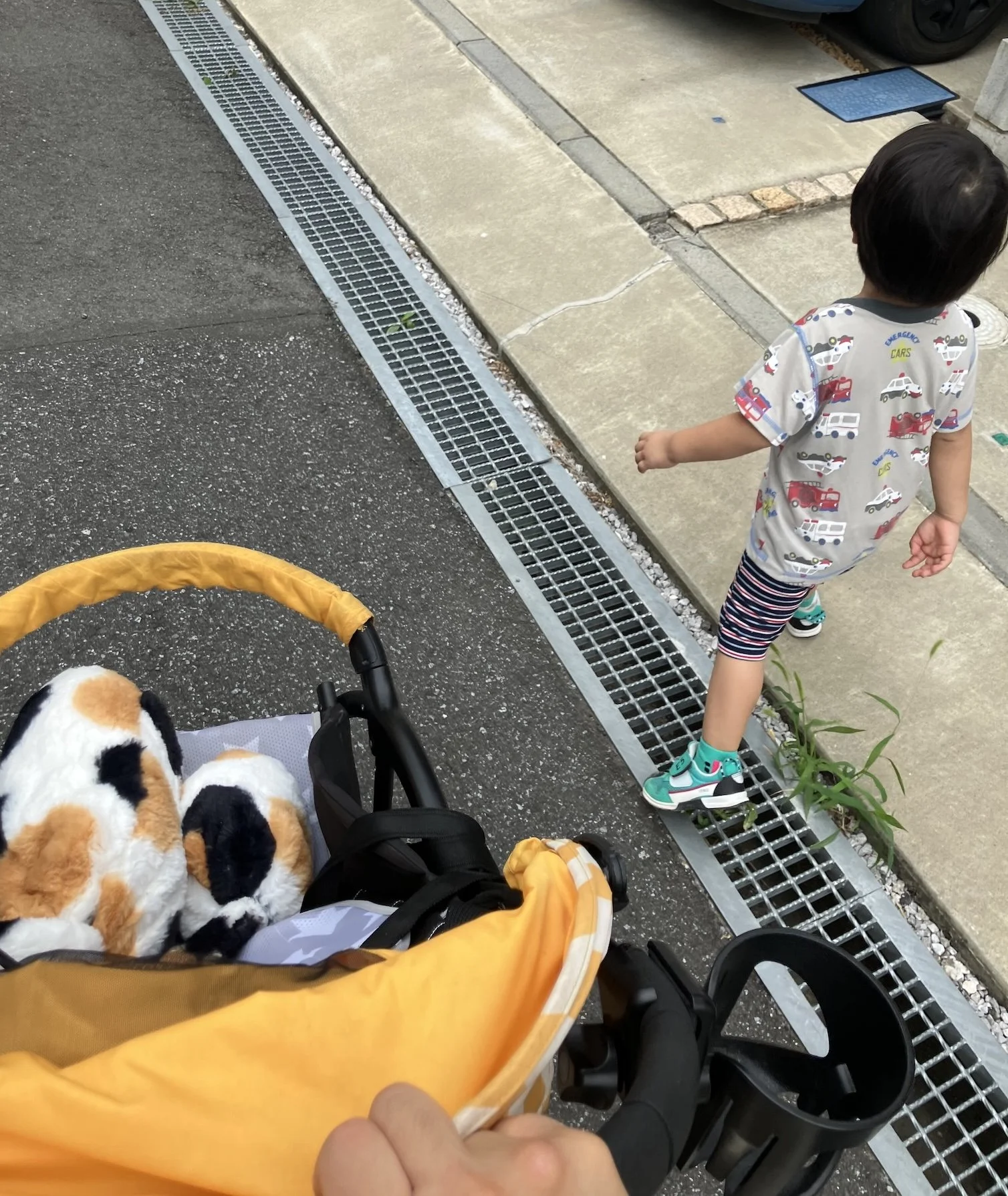 家から保育園まで子どもの足でも2,3分とかからない距離だが、鳥さんの声を聞いたりねこじゃらしを拾ったり側溝の水を眺めたり、毎日が冒険と発見のムスコ氏。